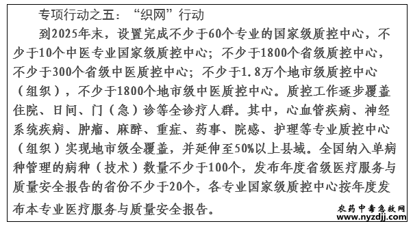为深入推进健康中国建设,进一步深化医药卫生体制改革,全面提升医疗质量安全水平,建设中国特色优质高效的医疗卫生服务体系,保障人民群众健康权益,在“以病人为中心,以提高医疗服务质量为主题”的医院管理年活动、“医疗质量万里行”活动、“三好一满意”活动、“方便看中医、放心用中药、看上好中医惠民便民活动”、改善医疗服务行动计划、“民营医院管理年”活动等工作的基础上,坚持继承与发展的原则,立足新发展阶段,紧扣公立医院高质量发展新形势、新任务,制定本行动计划。 一、总体要求 (一)指导思想 以习近平新时代中国特色社会主义思想为指导,深入贯彻党的二十大和二十届一中、二中全会精神,认真落实学习贯彻习近平新时代中国特色社会主义思想主题教育要求,把保障人民健康放在优先发展的战略位置,以满足人民日益增长的美好生活需要为根本目的,以推动医疗卫生服务高质量发展为主题,以提高供给质量为主攻方向,中西医并重,加强全面质量安全管理,促进优质医疗资源扩容和区域均衡布局,不断增强人民群众获得感、幸福感、安全感。 (二)行动目标 利用3年时间,在全行业进一步树立质量安全意识,完善质量安全管理体系和管理机制,进一步健全政府监管、机构自治、行业参与、社会监督的医疗质量安全管理多元共治机制,进一步巩固基础医疗质量安全管理,提升医疗质量安全管理精细化、科学化、规范化程度,进一步优化医疗资源配置和服务均衡性,提升重大疾病诊疗能力和医疗质量安全水平,持续改善人民群众对医疗服务的满意度。 二、行动范围 全国二级以上医疗机构。 三、组织管理 国家卫生健康委、国家中医药局负责全国行动计划的制定和组织实施,指导省级卫生健康行政部门(含中医药主管部门,下同)、国家级质控中心、行业学(协)会、医疗机构分别推进工作。省级卫生健康行政部门负责本辖区具体工作方案的制定和落实,指导辖区内医疗机构及相关组织、单位落实相关工作要求和监管责任,及时总结经验并加强宣传交流。 省级以上各专业质控中心负责制订本专业质量安全改进工作计划并组织实施;监测、分析本专业医疗质量安全情况,研究提出医疗质量安全改进目标和质控工作改进目标,加强质量安全改进策略研究,为行政部门管理工作提供技术支撑。其他各级质控组织按照分工落实工作。 各级各类医疗机构是行动的责任主体,医疗机构主要负责人是第一责任人。医疗机构要按照本行动计划和辖区具体方案要求,强化医疗质量安全主体责任,完善医疗质量安全管理体系,落实各项具体工作任务,强化人员教育,培育质量安全文化,提升医疗质量安全水平。 四、工作任务 (一)加强基础质量安全管理,夯实结构质量 1.健全医疗质量管理组织体系。医疗机构进一步健全院、科两级医疗质量安全管理体系,按要求成立由医疗机构主要负责人担任主任的医疗质量管理委员会,指定或者成立专门部门具体负责医疗质量安全日常管理工作。各业务科室成立由主要负责人担任组长的医疗质量管理工作小组,指定专人负责日常具体工作。 2.完善质量安全管理制度。医疗机构严格按照法律法规要求,建立健全本机构各项质量安全管理制度,强化重点环节和重点领域的日常管理,结合本机构实际,细化完善并严格落实18项医疗质量安全核心制度。 3.优化质量安全工作机制。医疗机构主要负责人每月召开医疗质量管理委员会专题会议,研究部署医疗质量安全工作。建立院周会反馈质量安全工作机制,创办质量安全月刊,督促指导各部门、各科室精准开展医疗质量安全改进工作。各部门、各临床科室及医技科室主要负责人每月召开专门会议,研究本部门、本科室医疗质量安全工作。 4.加强医务人员管理。医疗机构按照国家有关规定强化医师、护士及医技人员准入和执业管理,规范医师多点执业和定期考核,以临床诊疗指南、技术规范、操作规程等为重点,对全体医务人员加强基本理论、基本知识、基本技能培训及考核,不断提升医务人员业务能力。 5.强化药品器械管理。医疗机构依法依规确定本机构药品器械供应目录,加强重点监控合理用药药品、抗微生物药物、抗肿瘤药物以及放射影像设备、植入类器械等常用设备器械的管理,做好药品器械不良反应的监测报告,对不良反应多且安全隐患突出的药品器械要及时依法依规清退出供应目录。 6.规范医疗技术管理。医疗机构全面梳理本机构医疗技术临床应用情况,以限制类技术、内镜和介入技术等为重点加强质量安全管理,强化新技术、新项目机构内准入管理,完善技术授权和动态管理等相应的管理制度及工作流程,在保障医疗质量安全的基础上,加强新技术临床应用和适宜技术推广。中医医疗技术操作要严格按照《中医医疗技术相关性感染预防与控制指南(试行)》要求,严格落实感控管理各项要求。 7.提升急诊质量。医疗机构强化院前医疗急救与院内急诊的无缝衔接机制,畅通院前医疗急救与院内急诊信息,强化预检分诊,优化急诊就诊和绿色通道流程,完善急危重症患者,特别是心血管疾病、多发性创伤、心脏骤停等急危重症患者的多学科协作救治机制,提升患者救治效果。 8.改善门诊医疗质量。医疗机构严格执行首诊负责制,加强门急诊专业人员和技术力量配备,优化门急诊诊