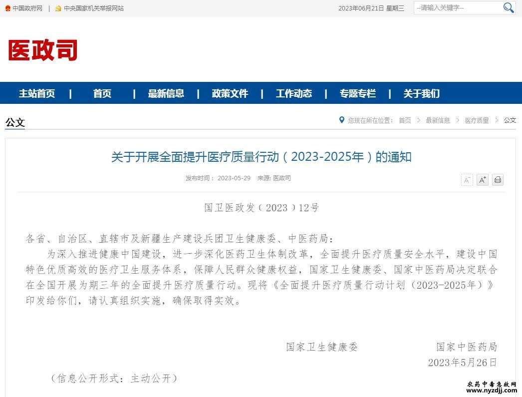 26.强化目标导向,优化改进工作机制。卫生健康行政部门指导质控组织和医疗机构聚焦年度国家医疗质量安全改进目标、各专业质控工作改进目标和患者安全目标,合理细化本地区、本机构改进目标并确定目标改进幅度,把推动目标实现作为年度质量安全管理工作重点,创新工作机制和方式方法,以点带面提升质量安全水平。 27.充分发挥考核评估指挥棒作用。卫生健康行政部门充分发挥医院评审、公立医院绩效考核、公立医院高质量发展评价、医联体绩效考核、临床专科评估、单病种质量评估等工作的指挥棒作用,将医疗质量管理情况作为考核工作的重要内容,督促指导医疗机构落实相关政策要求。 28.加强中医药质控。医疗机构应将中医医疗技术应用、中药合理使用等,纳入医疗质量管理。各级中医药主管部门应加强中医药质控机构设置和建设,加大中医诊疗技术规范的修订和完善。 五、工作安排 (一)启动阶段(2023年5月—6月) 国家卫生健康委联合国家中医药局制定印发行动计划,拟定对各省份行动效果监测指标体系,召开工作会议做出具体工作安排。各省级卫生健康行政部门制定具体工作方案报国家卫生健康委和国家中医药局备案,部署本辖区行动相关工作。 (二)实施阶段(2023年6月—2025年9月) 各级卫生健康行政部门按年度进行行动工作部署和工作总结。各地按照本计划分别落实工作,加强指导评估,及时解决共性问题。发掘先进做法和典型经验,遴选年度典型案例并进行宣传推广。 (三)评估总结(2025年10月-12月) 在各地总结的基础上,国家卫生健康委和国家中医药局对质量安全提升工作进行全面总结评估,提炼质量安全提升工作经验,通报巡查发现的典型案例,加强行动计划和工作成效宣传,营造良好舆论氛围,对于工作中发掘的先进做法和典型经验,组织宣传推广,推动形成制度性安排。 六、工作要求 (一)加强组织领导。各单位要充分认识开展全面提升医疗质量行动计划的重要意义,以对人民健康高度负责任的态度抓好工作落实。卫生健康行政部门负责同志要亲自抓,细化政策措施,明确责任分工,层层压实责任,推进工作有序开展。医疗机构主要负责人要亲自研究、靠前领导,落实落细各项工作,强化基础医疗安全管理,加强医疗质量安全日常监测、分析和反馈,推动行动顺利开展。 (二)做好政策协同。各地卫生健康行政部门要对照法律法规、部门规章和有关文件等要求制定完善配套文件,指导医疗机构建立健全相关制度规范并加强日常监管。充分利用医院评审、绩效考核、专科评估等工作抓手,将医疗质量安全提升工作落实落细,推动医疗质量安全持续改进。 (三)强化科学管理。各级卫生健康行政部门、质控组织和医疗机构要密切关注医疗质量安全管理领域前沿进展,吸纳国内外先进管理经验和方法,加强医疗质量安全管理相关学习培训,推广单病种管理、全面质量管理等医疗质量管理工具,提升质量安全管理科学化程度和管理效能。 (四)加强宣传引导。各级卫生健康行政部门和质控组织要注重从多维度、多层面挖掘行动落实先进典型,充分利用行业主流媒体和短视频、公众号等网络新媒体多种形式进行宣传推广,营造良好氛围。省级以上卫生健康行政部门要遴选具有代表意义的典型案例予以通报表扬,充分调动医疗机构参与行动的积极性。 (五)建立长效机制。各省级卫生健康行政部门要在行动期间不断总结经验,进一步巩固全行业质量安全意识和“以病人为中心”服务理念,增强各方参与医疗质量安全管理的意愿,进一步提升行业社会认可度,完善政府监管、机构自治、行业自律、社会监督的医疗质量安全管理多元良性共治长效机制。 (责任编辑:admin) |