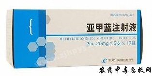 【解毒机制及药代动力学】 亚甲蓝(methylthioninium chloride,methylene blue)又名次甲蓝、美蓝。本品系氧化剂,根据其在体内的不同浓度,对血红蛋白有两种不同的作用。低浓度时6-磷酸-葡萄糖脱氢过程中的氢离子经还原型三磷酸吡啶核苷传递给亚甲蓝,使其转变为还原型的白色亚甲蓝;白色亚甲蓝又将氢离子传递给带三价铁的高铁血红蛋白,使其还原为带二价铁的正常血红蛋白,而白色亚甲蓝又被氧化为亚甲蓝。亚甲蓝的还原-氧化过程可反复进行。高浓度时,亚甲蓝不能被完全还原为白色亚甲蓝,因而起氧化作用,将正常血红蛋白氧化为高铁血红蛋白。由于高铁血红蛋白易与CN结合形成氰化高铁血红蛋白,但数分钟后二者又离解,故仅能暂时抑制CN对组织中毒的毒性。 本品静脉注射后作用迅速,基本不经过代谢即随尿排出,口服在胃肠道的pH条件下可被吸收,并在组织内迅速还原为白色亚甲蓝,约6天内可由尿中排出约74%,其中22%为原形,其余为白色亚甲蓝,且部分可被甲基化,少量通过胆汁由粪便排出。肾功能减损者,血药浓度可增高。 【中毒救治适应证】 1.用于治疗亚硝酸盐、硝酸盐、苯胺、硝基苯、三硝基甲苯、苯醌、苯肼等化合物,和含有或产生芳香胺的药物(乙酰苯胺、对乙酰氨基酚、非那西丁、苯佐卡因等)引起的高铁血红蛋白血症。 2.对急性氰化物中毒,能暂时延迟其毒性。 【不良反应与禁忌证】 1. 口服可引起恶心、呕吐、腹泻等消化道症状和膀胱刺激症状。局部不良反应少见。静脉注射过快或剂量过大(如500mg以上),可引起头痛、眩晕、神志不清、恶心、腹痛、心前区疼痛、出汗、心率增快及血压下降等症状。使用本品后尿液呈蓝色,偶可出现尿道灼痛、红细胞脆性增加、心肌损害、心电图改变(如T波低平或导致)等,还有导致皮肤过敏和溶血的报道。 2.严重肝、肾功能不全者慎用,葡萄糖6-磷酸脱氢酶(G-6-PD)缺乏症、镰状红细胞贫血及严重地中海贫血患者忌用。 【用法用量】 1.治疗高铁血红蛋白血症 用量1~2mg/kg,一般取1%本品溶液5~10ml,稀释于25%葡萄糖溶液20~40ml中缓慢静脉注射。如30~60分钟发绀不消退,可按原剂量重复注射1次,3~4小时后根据病情可再重复注射半剂。为避免过量,最好在注射1小时后先检测高铁血红蛋白浓度后再行给药。也可口服本品150~250mg,每4小时1次。大剂量维生素C和葡萄糖对高铁血红蛋白也有还原作用,可与本品联合使用。 2.治疗氰化物中毒 本品5~10mg/kg,或用1%溶液50~100ml,加入25%葡萄糖溶液中缓慢静脉注射,再静脉注射25%硫代硫酸钠20~50ml,严重者二者可交替使用,最大剂量不超过20mg/kg。 【使用注意事项】 1.本品不可作皮下、肌内或鞘内注射,也不可气管内滴入,以免造成局部坏死和中枢器质性损害。 2.治疗高铁血红蛋白血症时,本品每日用量120mg左右即可,重症者可连用2~3天。因为本品完全排泄需3-5天。如大剂量反复使用易导致体内蓄积而引起与治疗相反的作用。 3.对先天性还原型辅酶II(NADPH)及高铁而红蛋白还原酶缺乏所致的高铁血红蛋白血症效不佳,对异常血红蛋白M伴随的高铁血红蛋白症无效。