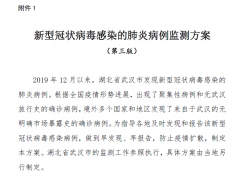 [新型冠状病毒] 新型冠状病毒感染的肺炎病例监测方案(第三版) 日期:2020-01-29 15:43:09 点击:458 好评:0